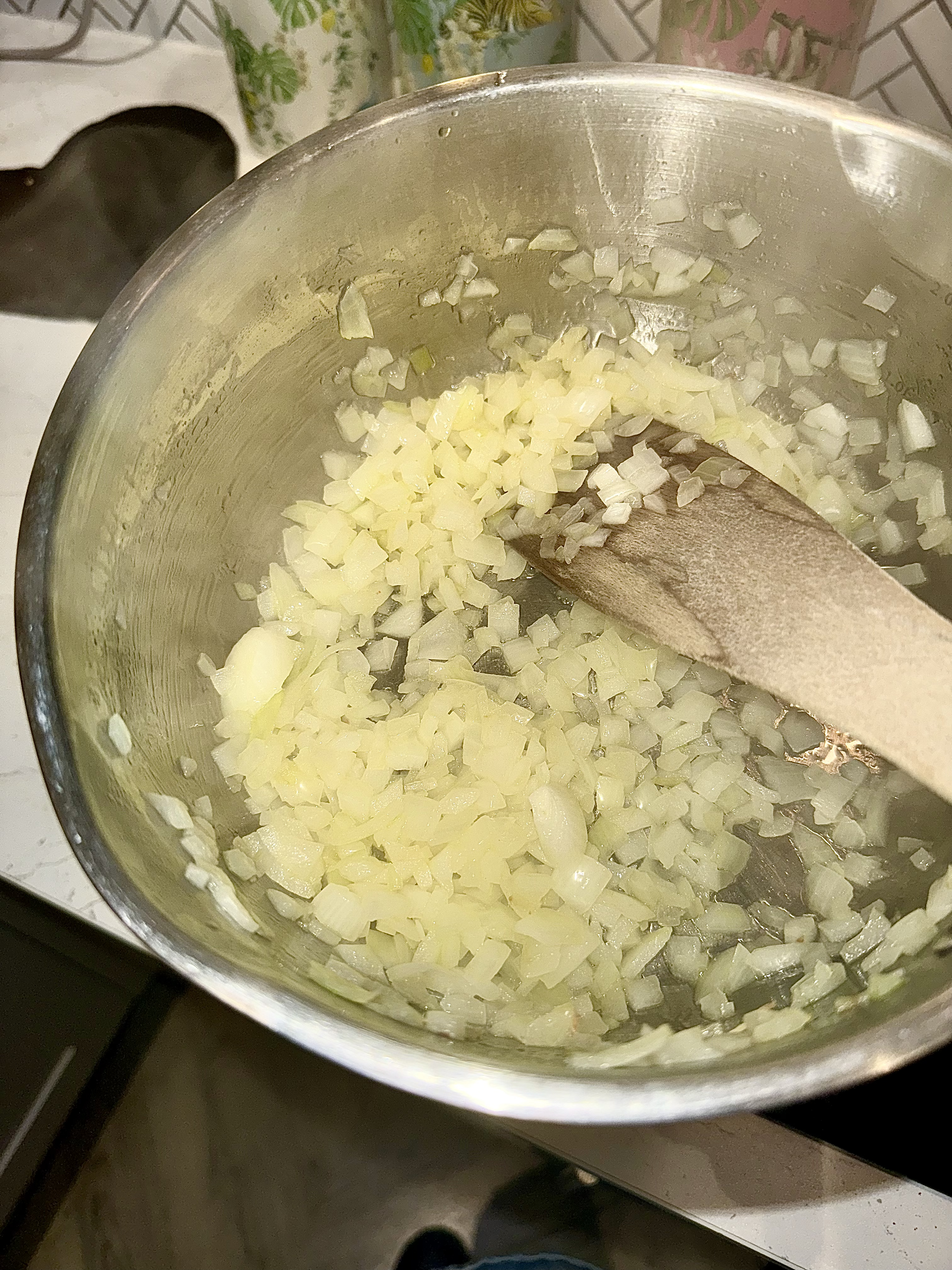 Heat the olive oil in a large pan over medium heat. Add the chopped onion and cook for 4–5 minutes until soft and slightly golden. Add the minced garlic and cook for another 30 seconds until fragrant. - Cook the mince: