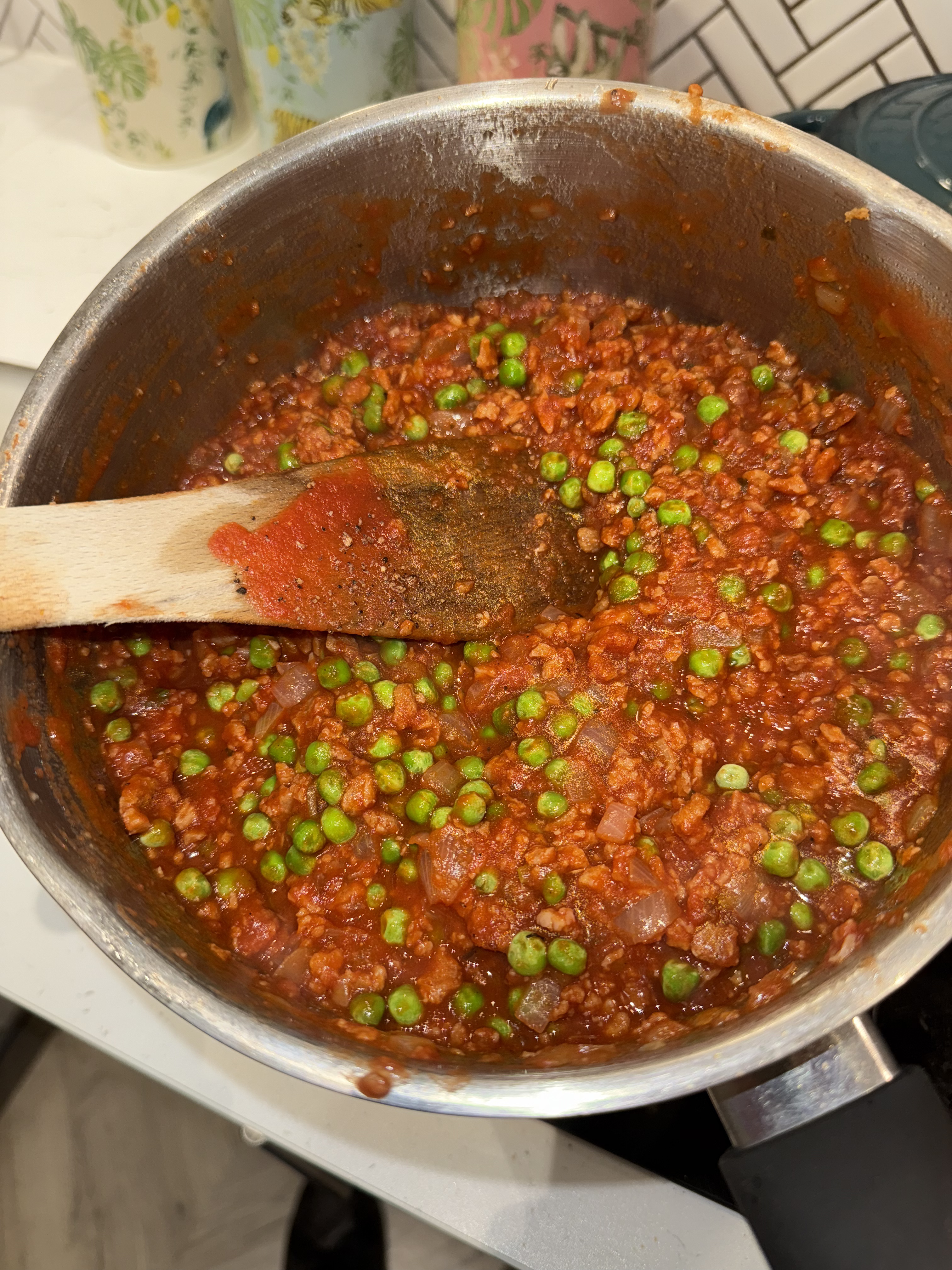 Classic bolognese is slow-cooked for hours, but weeknights demand speed. By using passata and veggie mince, this recipe keeps all the comfort of a rich, meaty sauce in a fraction of the time. The peas brighten things up and surprise your taste buds, making it a modern, lighter take.