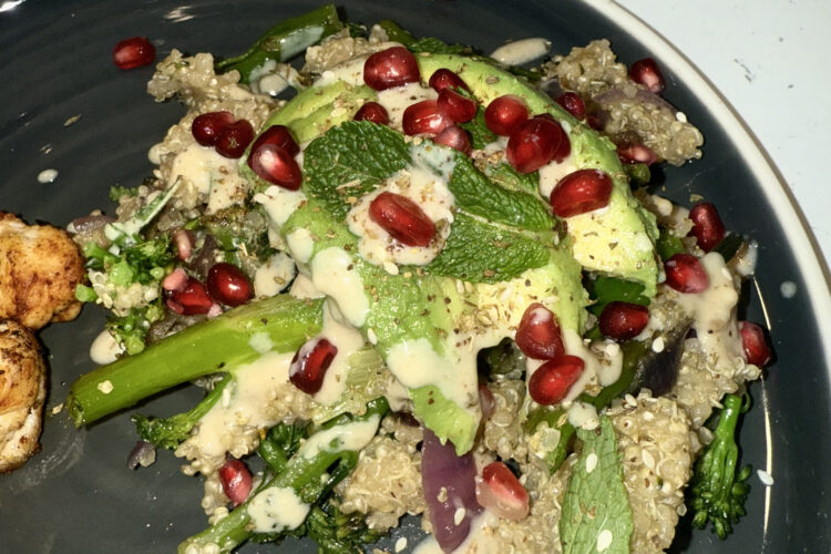 Quinoa with Tenderstem Broccoli, Red Onion, Spring Onions & Tahini Dressing